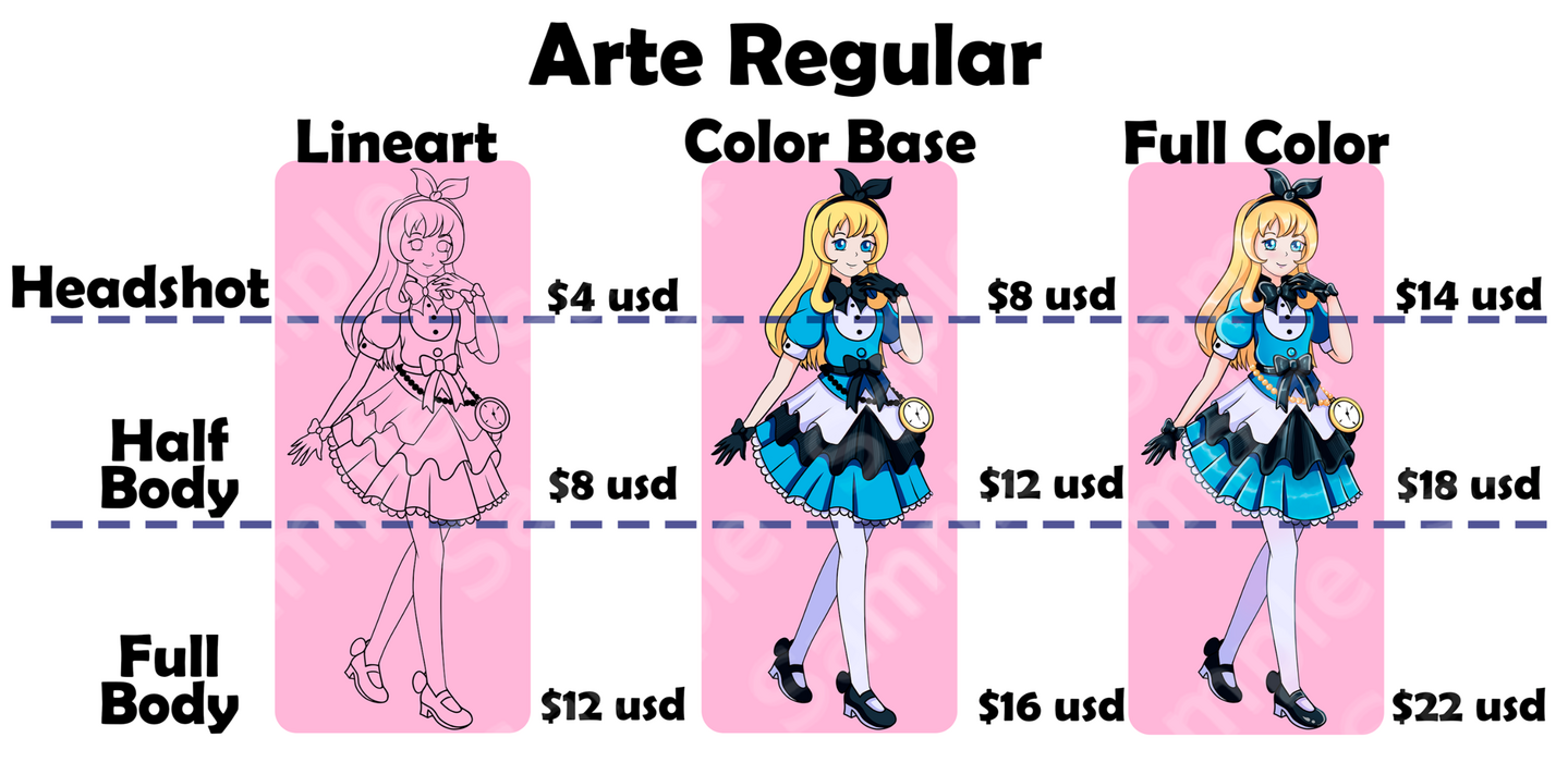 Todas las ilustraciones se entregan con fondo liso. Sí desea algo más detallado se le sumará al precio.